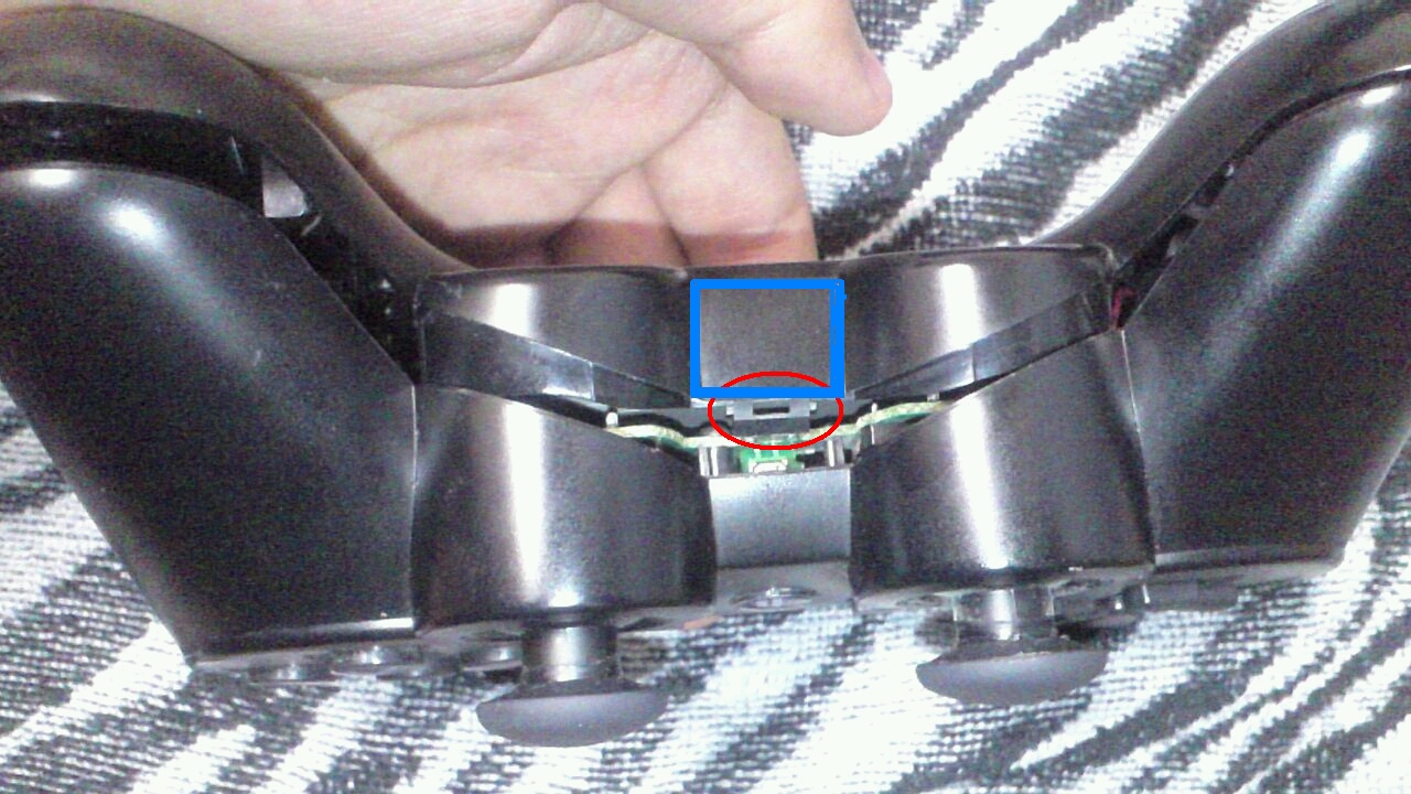 それと、Google先生で「ps3 コントローラー 分解」と検索した時に出てくる上位複数のブログにあるL2・R2の画像がちょい違うのでそれも兼ねています。私の場合、接続部が金属パーツではなく一体型のプラに変わっているので。